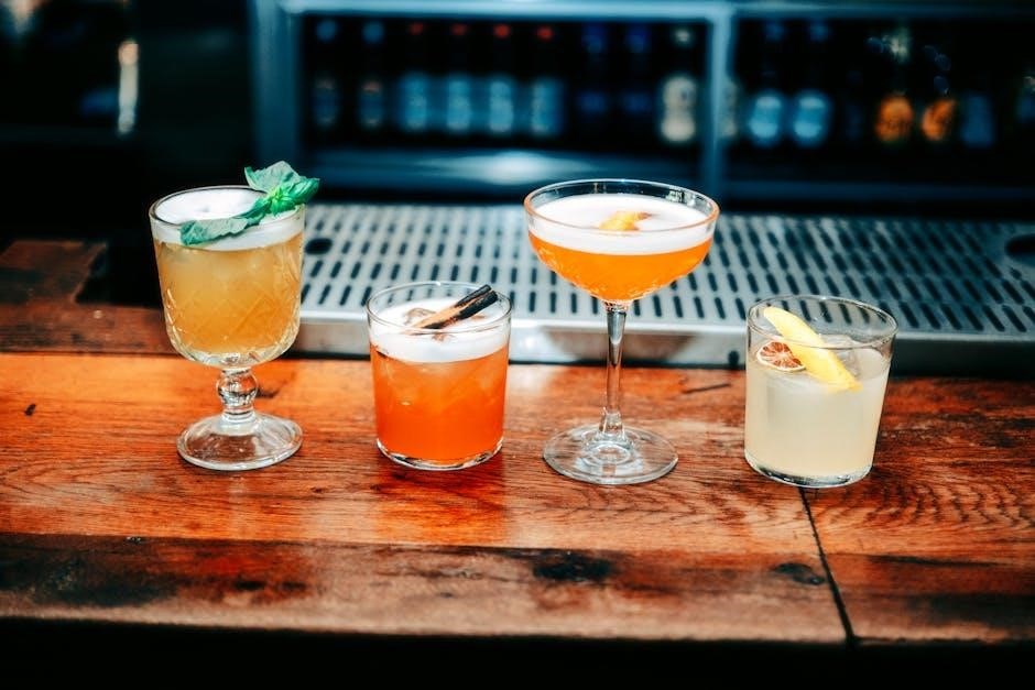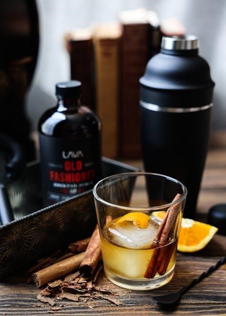 Detailed instructions within these PDFs emphasize the importance of proper shaking technique, ensuring thorough chilling and emulsification․ Garnishing suggestions commonly include a cherry and an orange slice, enhancing both visual appeal and aromatic complexity․