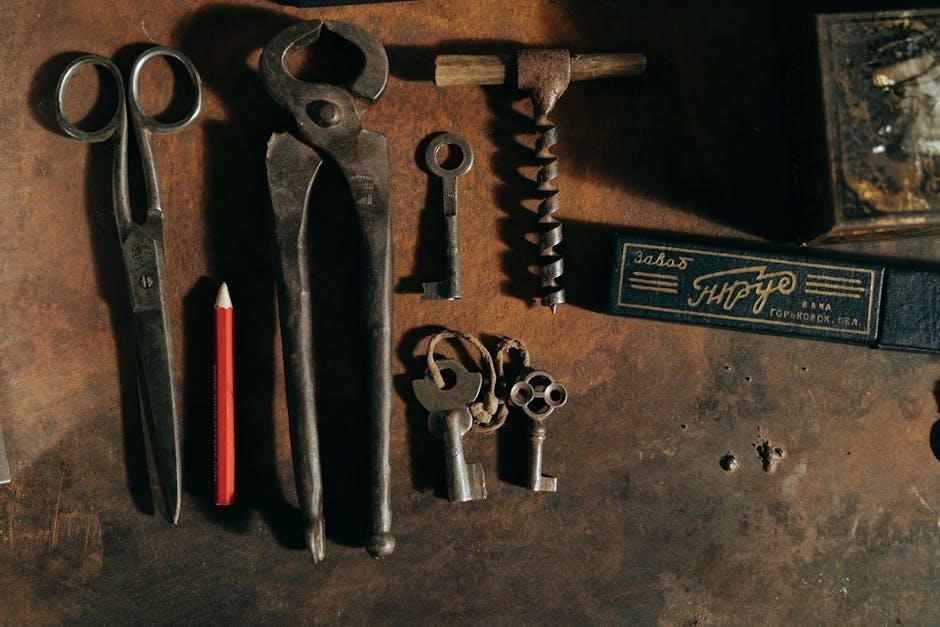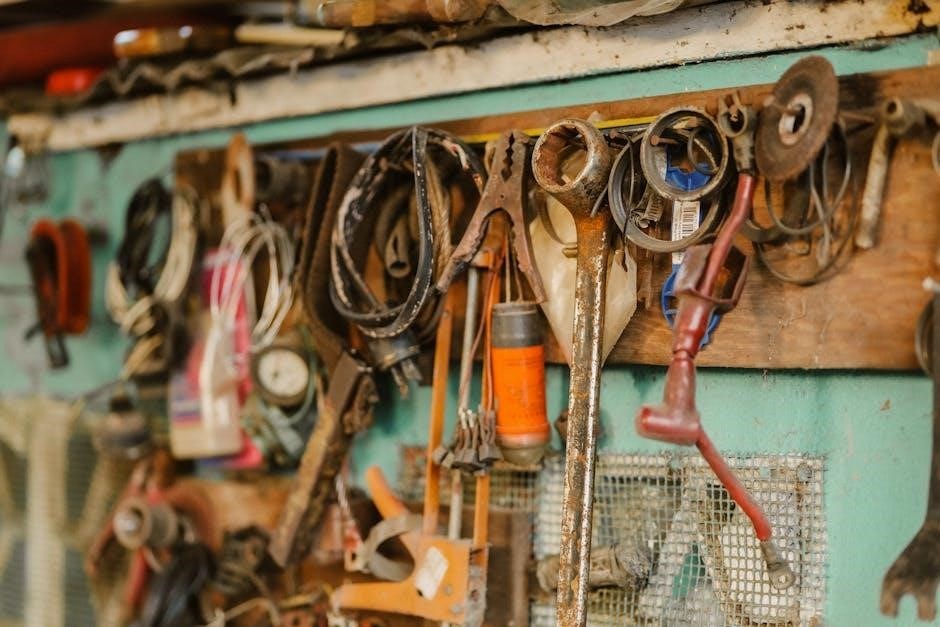 A rubber mallet proves useful for gently persuading stubborn components, while a hammer is needed for more forceful applications. Don’t forget measuring tools like a tape measure and feeler gauges for precise adjustments. PDF manuals often illustrate these tools in exploded diagrams, aiding identification.