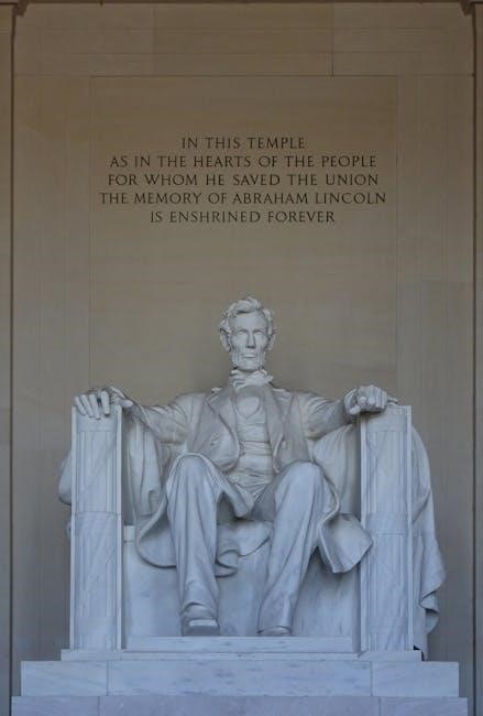 Abraham Lincoln led the country through the Civil War‚ issuing the Emancipation Proclamation and ultimately preserving the Union. Worksheets frequently assess understanding of the causes and consequences of the Civil War‚ and Lincoln’s role in it.